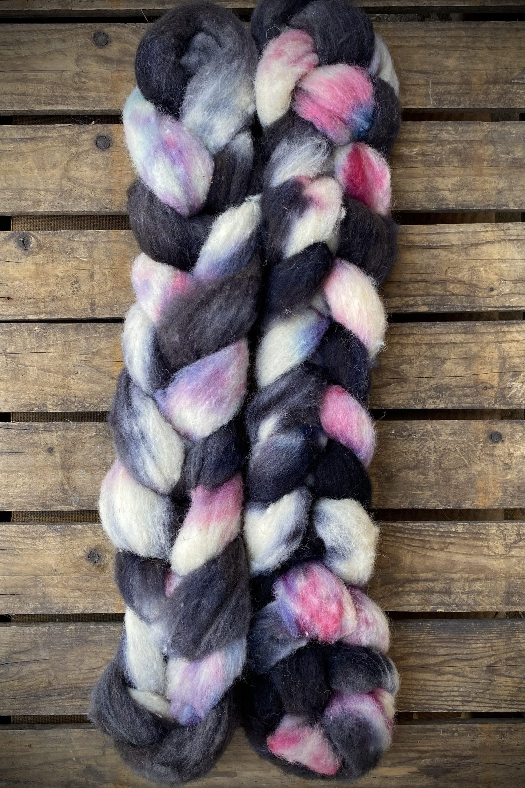 100g Handgefärbte Fasern aus der regionalen Waldschaf Mischung „Hinnawäldler“.