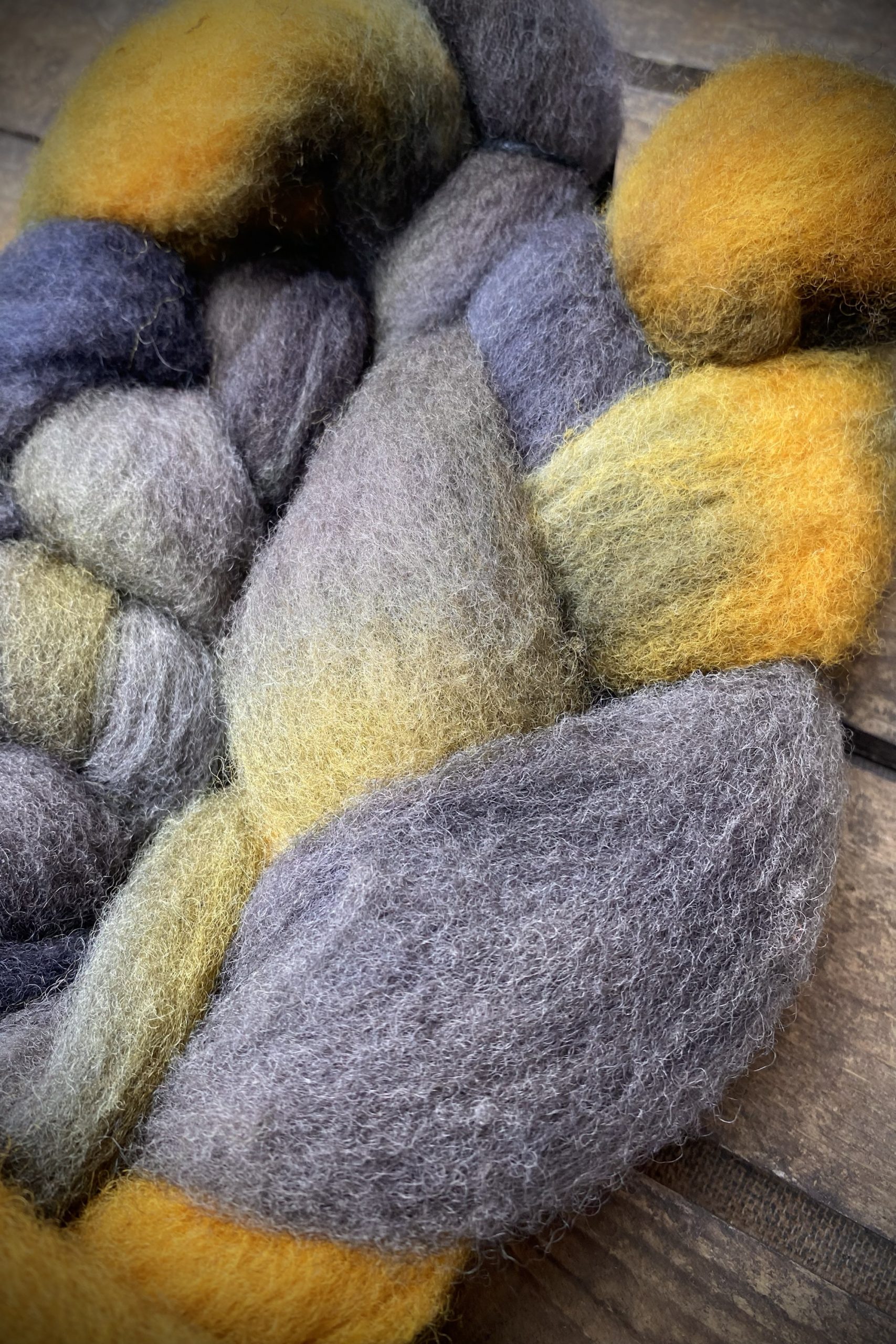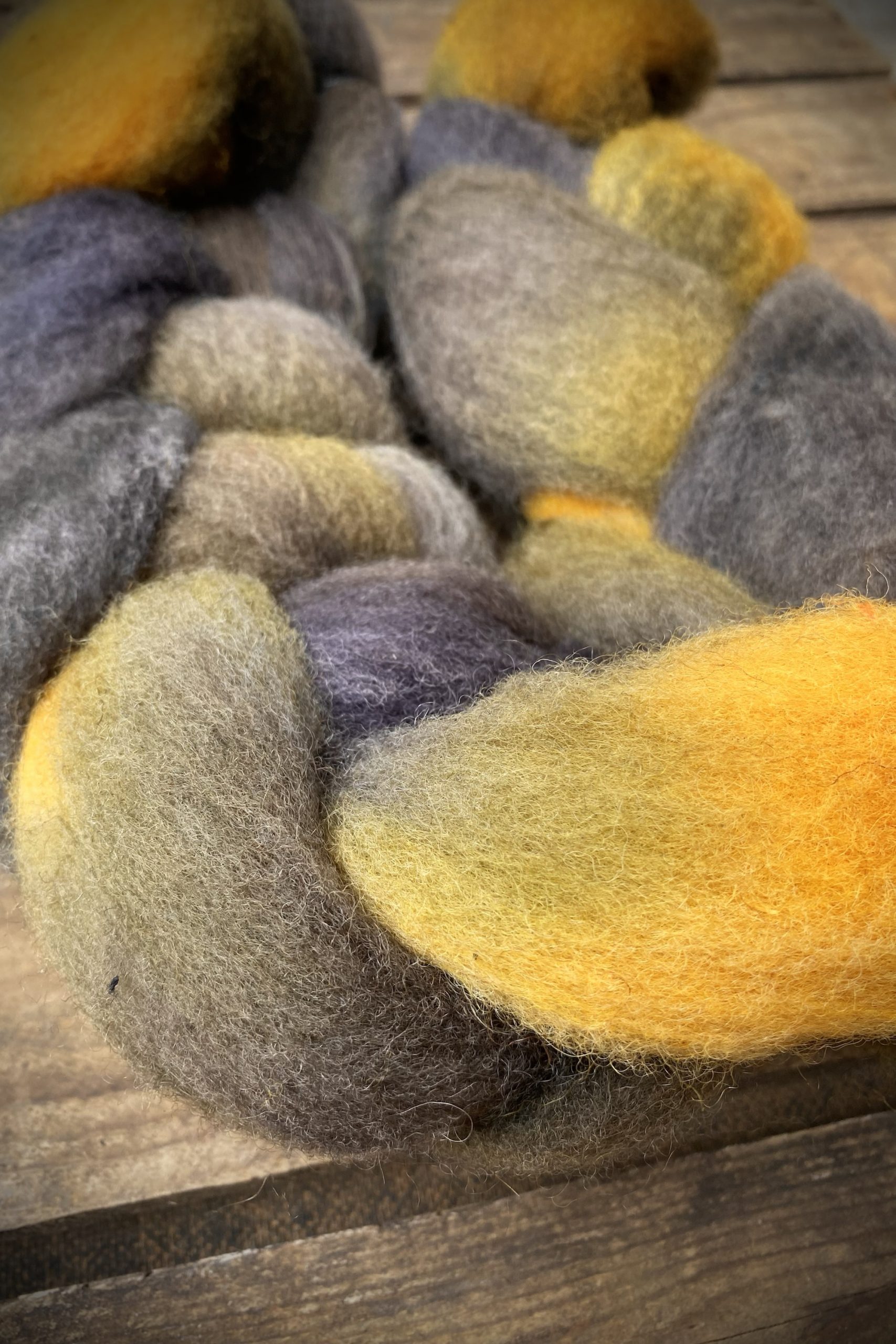 100g Handgefärbte Fasern aus der regionalen Waldschaf Mischung „Hinnawäldler“.